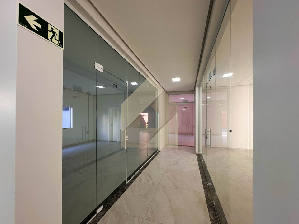 O espaço conta com fachada totalmente em vidro, proporcionando ótima luminosidade natural e um ambiente mais agradável e profissional. Além disso, não possui pilares, permitindo um melhor aproveitamento interno e maior liberdade na organização.
